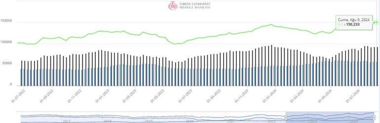 Altın rezervleri 57 milyar 895 milyon dolardan 57 milyar 902 milyon 690 bin dolara yükseldi.