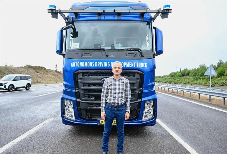 Basın açıklamasının ardından direksiyon başına geçerek otonom kamyonun test sürüşünü gerçekleştiren Bakan Uraloğlu,sürüşün minimum müdahale ile gerçekleştiğini kaydederek,“Şoförlüğe ihtiyaç yok bu araçta,biz de deneyimledik. Sollama senaryosu vardı. Araç kendi kendine öndeki araca yaklaştığı için sollama yapmaya çalıştı; ama aynı anda arkamızdan gelen bir araç da sollama yapmaya çalıştığı için araç otomatikman hızını yavaşlatarak tekrar kendi şeridine döndü,ondan sonra takip ettik. Bu araçtaki bütün kameralarla,sistemlerle beraber algıladı ve bizi emniyetle durdu. Sürüşümüzü başarıyla test etmiş olduk.” dedi. Uraloğlu,bir sonraki adımın Seviye-5 olduğunu kaydederek,tamamen araçların tamamen sürücüye ihtiyaç duymadan hareket edebileceğini de vurgulayarak,“Şu anda zaten hiçbir müdahalemiz olmadı. Mesela U-dönüşlerini biz yaptık,niye biz yaptık? Sisteme yüklenmedi istersek onu da yükleriz,yolu tanıtabiliriz.” dedi. Yasal altyapıyla ilgili de çalışmalar yapıldığını kaydeden Uraloğlu,“Şu anda ancak trafiğe kapalı yerde bunu yapıyoruz. Önümüzdeki yılın ilk çeyreğinde bir yasal düzenlemeyle trafiğin daha disipline ve daha az yoğun olduğu yerde muhtemelen canlı trafikte denemelere başlayacağız. Bunun altyapısını da hukuki altyapısını da oluşturmaya başladık.” şeklinde konuştu.