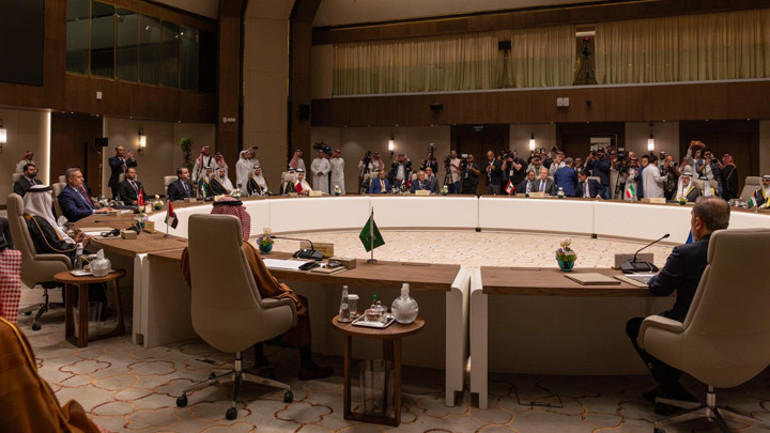 Suudi Arabistan'ın başkenti Riyad'da bir araya gelen Türkiye,Azerbaycan,Bahreyn,Mısır,Ürdün,Kuveyt,Lübnan,Pakistan,Katar,Suudi Arabistan,Suriye ve Birleşik Arap Emirlikleri (BAE) dışişleri bakanları,İran'ın saldırılarına ilişkin istişare toplantısı gerçekleştirdi.