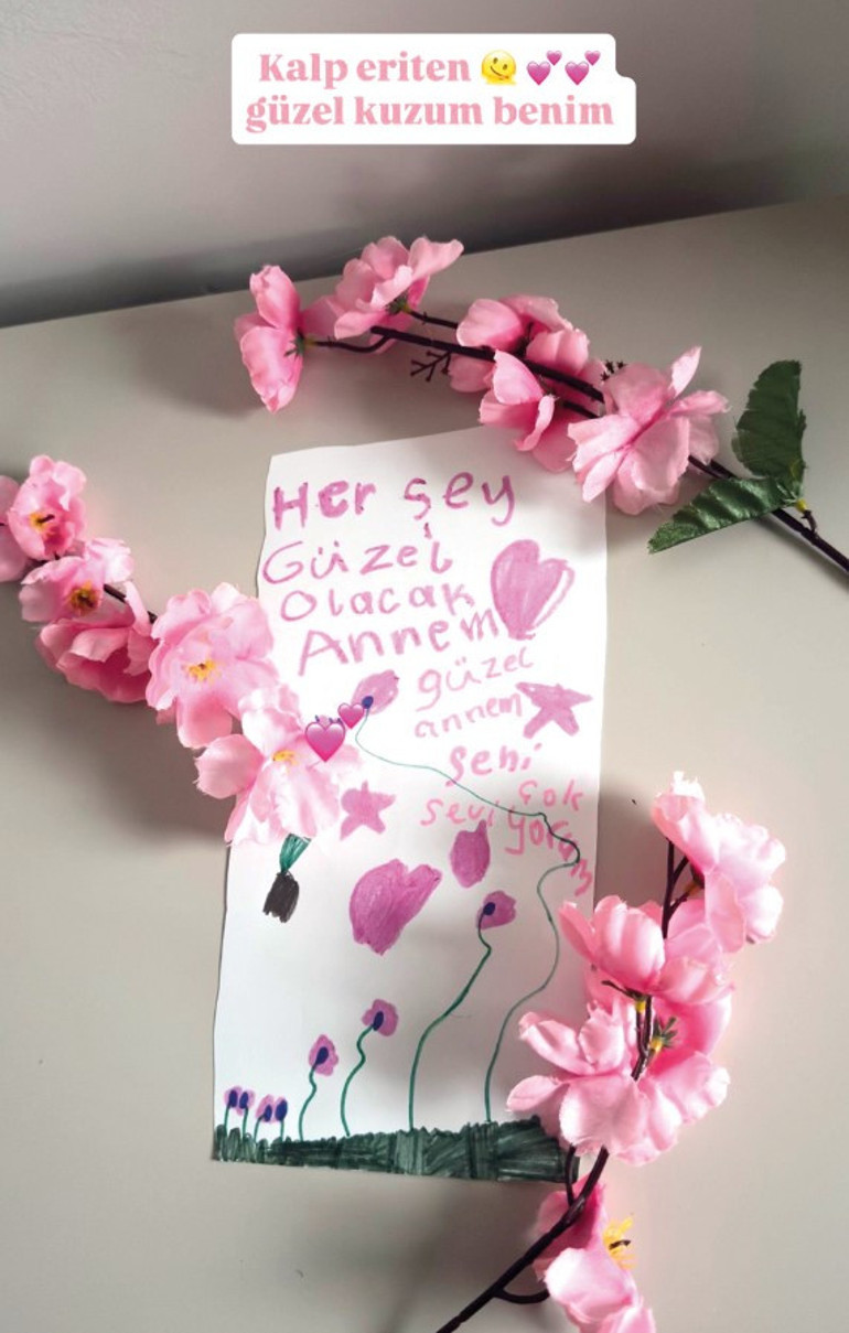 Ünlü model kızının “Her şey güzel olacak annem. Seni çok seviyorum” yazılı notunu Instagram hesabından “Kalp eriten,güzel kuzum benim” sözleriyle paylaştı.
