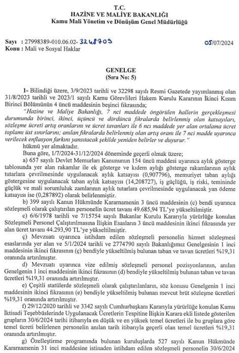 Karara göre,memur ve memur emeklilerine yüzde 19.31 oranında zam yapılması kesinleşti.