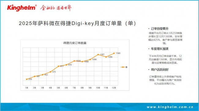 Denizaşırı pazar genişlemesi açısından, Slkor 2025'te Digi-key platformunda oldukça başarılı bir performans sergileyerek %425'lik bir yıllık büyüme oranına ve 1360 siparişlik aylık zirve sipariş hacmine ulaştı.
