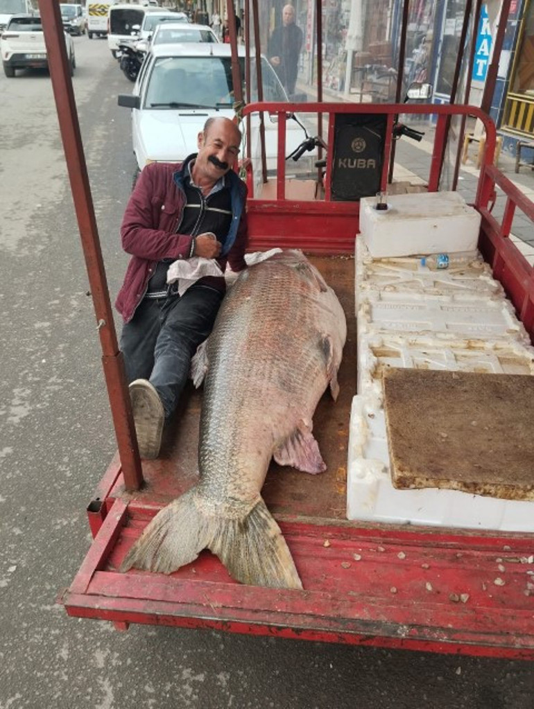 Diyarbakır'ın Çermik ilçesinde balıkçılar tarafından yakalanan 120 kiloluk dev turna balığı görenleri hayretler içinde bıraktı.
