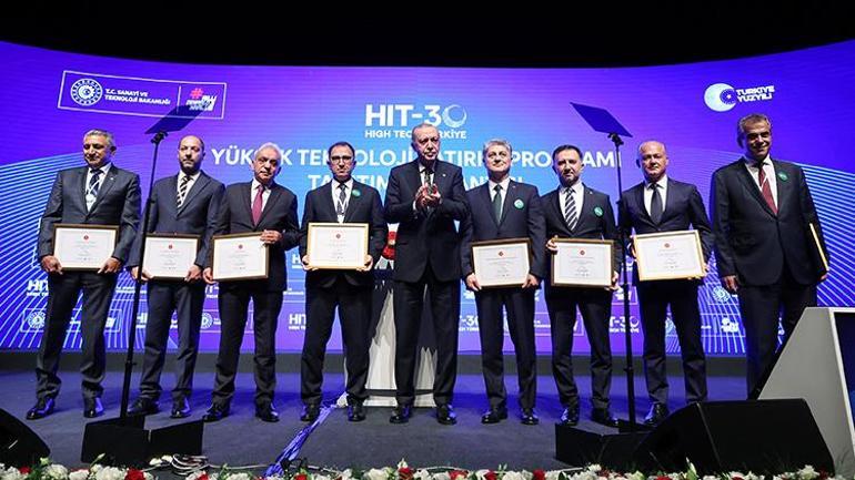 Türk ekonomisinin çok boyutlu bir dönüşüm sürecinden geçtiğini ifade eden Erdoğan,"Daha doğru bir ifadeyle kabuk değiştiriyor. İş dünyamız şunu çok iyi bilsin. İnşallah bu sürecin sonunda ekonomimiz farklı bir lige yükselecek. Gelişmiş ülkeler dahil tüm dünyayı etkileyen sis bulutu dağıldığında Türkiye yeni dönemin forveti olacak. Tanıtımını yaptığımız HIT-30 programı,işte bu yolculuğumuzda önemli bir kilometre taşı görevi üstlenecek. Yüksek teknolojili yatırımlar için davet ve destek programı ile teknoloji geliştirme ve yüksek katma değerli üretim kapasitemizi en üst seviyeye taşıyacak bir süreci başlatıyoruz. HIT-30 ile yüksek teknolojili ve yüksek katma değerli yeni yatırımlar için Türkiye'nin avantajlarını pekiştirirken ülkemizin 2030 yılına kadar yüksek teknoloji yatırımlarının odak noktası haline gelmesini amaçlıyoruz. Programla yarı iletkenler,mobilite,yeşil enerji,ileri imalat,sağlıklı yaşam,dijital teknolojiler,haberleşme,uzay ve bu alandaki değer zincirlerini geliştirecek otuzun üzerindeki başlıkta yatırımlara nitelikli destekler sağlayacağız. Bu yatırımlarda başlıca dört nitelik arayacağız" dedi.