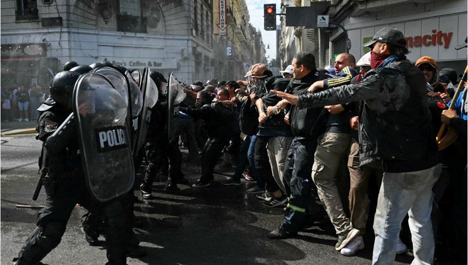 Arjantin'de Milei, devlet başkanlığı seçimini kazanmasından bu yana sol gruplar ve sendikalar tarafından sıklıkla protesto ediliyor.
