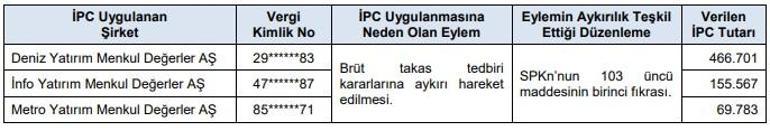 SPK haftalık bülteninde yer alan karara göre,verilen cezalar şu şekilde: